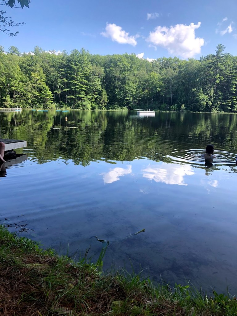 I used to run 10ks a lot so I would always run on the mountain behind my house. There’s a government facility building that has an electric wire around its boundaries and a lot of weird planes and jets that fly over our field to get to. When you run to the top you see the building and you know it’s time to turn around. When you run down the mountain your legs are tense but they start to relax. Your lungs are heaving but they start to find a rhythm. Your neck bobs with your head and with your steps and you actually start to feel like you might make it down the mountain alive. I was running with my uncle one time and there was an injured sparrow in the dirt road ahead. Sam the dog had no interest in it but we soon figured out to move it out of the middle of the road to the side with some leaves. We kept running until we get to the base of the mountain and then we jumped into the ice cold lake that felt like velvet and running in slow motion. As I swam to Bare Ass Beach I thought back to the bird that was injured. But it is not me and for right now I am flying with breastroke in the lake that cannot hold me back. I say a prayer to the god I do not believe in- hoping it will be okay, and then, I move on with my life. Right?