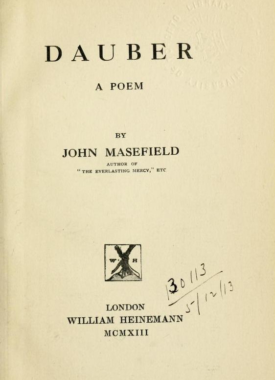 I first heard “Dauber” about five years ago, sitting on the narrow benches across from the rocking tables that can only be found in the main saloon of a schooner. Shenandoah is her name. Captain would read us this poem most nights. I have to admit, most of us, including myself, zoned out or napped a little during his tales. In fact, in those junctures there were definitely a million things I’d rather do. Yet I find myself in moments of introspective reflection craving those words that were so melodically and boringly read to me. A table one cannot lean their head on, a head that smells like what one does in the head- right next to us, and the distant sounds of late night ferries. It took me a while but I tracked down a copy of what I think is the majority of the poem which Captain read to us at night. As I read over it again recently I found myself actually encapsulated and blindingly fascinated. Dauber’s story is one to me in which I actually really can understand. While Masefield’s old english and ever-present formal rhymes might have put me to sleep before, being able to engage with his words with my own eyes was a completely new experience. Now, when I think of the verbal utterance of this story, I can’t help but think it is perhaps the best lullaby that has ever been read to me.
