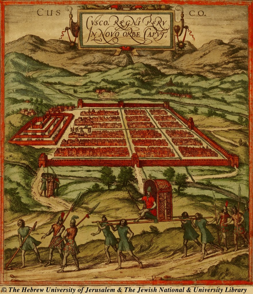 Today my “Form of the City” class was picking and looking at maps. I picked a map of Cusco that (1572, Braun and Hogenberg, Civitates Orbis Terrarum, map I-58) that seemed relevant to a lot of what I am interested in. I’ve been to Cuzco and was fascinated with the juxtaposition between Incan/Andean architecture and Spanish Imperialized architecture. Most importantly perhaps the mesh between the two: the physical intersections were quite poignant actually. I enjoyed looking at this map and I hope you do too.